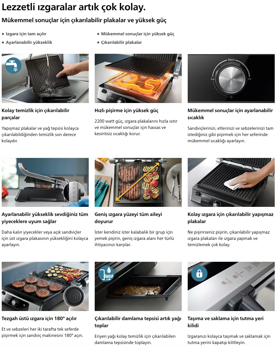 Philips 5000 Serisi Contact Grill HD6301/90 2200 W Tost Makinesi