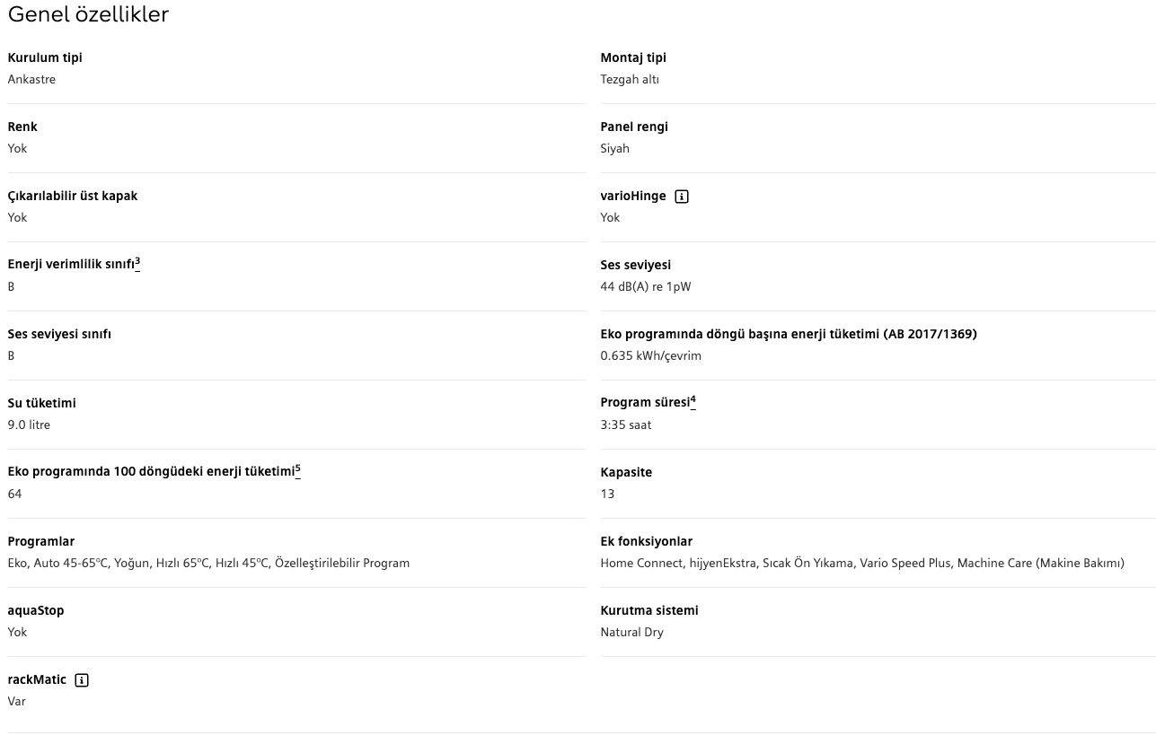 Sıemens SN45EB01NT iQ500 Tezgah Altı Bulaşık Makinesi 60 cm Siyah